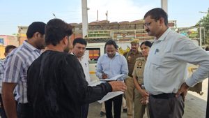 इसके उपरांत जिलाधिकारी एवं पुलिस अधीक्षक द्वारा राधाकृष्ण फिलिंग स्टेशन पर पेट्रोल एवं डीजल के उपलब्ध स्टॉक की जांच की गई। निरीक्षण के दौरान पेट्रोल पंप संचालकों को निर्देशित किया गया कि सड़क सुरक्षा नियमों का कड़ाई से पालन कराया जाए तथा बिना हेलमेट दुपहिया वाहनों को पेट्रोल न दिया जाए।